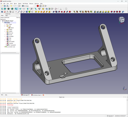 After a week of on-and-off learning I was not sure I wanted to continue. Even after getting comfortable with the basics, frustration levels would spike to 11 sometimes. The main issue I kept running into was that altering a previous feature would break everything that came after, requiring a varying amount of work to fix. The FreeCAD wiki suggests ways to mitigate this but many of them are un-intuitive and/or inconvenient. After some googling this seems to be caused by a pretty difficult to solve issue called the “Topological Naming Problem” (where FreeCAD can’t keep track of surfaces / edges / vertexes in a stable fashion when features are changed). Then I came across this blog post that pointed out a fix has actually been developed earlier this year. A developer by the name of RealThunder has created a fork of FreeCAD called “Link Branch” which can track topology in a (more) stable fashion.