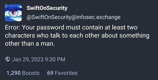 Source: https://infosec.exchange/@SwiftOnSecurity/109773679300002481 Context: https://en.m.wikipedia.org/wiki/Bechdel_test