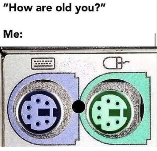 (Picture shows the lilac and blueish ports that we had for mouse and keyboard back “in my days” with the words “How old are you” - “Me:” on top - just because this community semmingly requires a picture added)