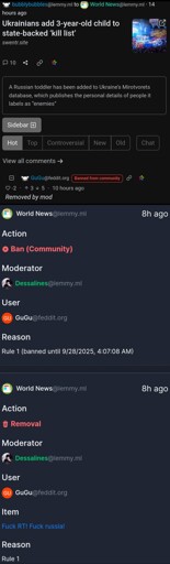 got banned for calling out a tankie for posting russian propaganda (apparantly the ukrainians are putting hits out on infants, specifically, you know. /s)