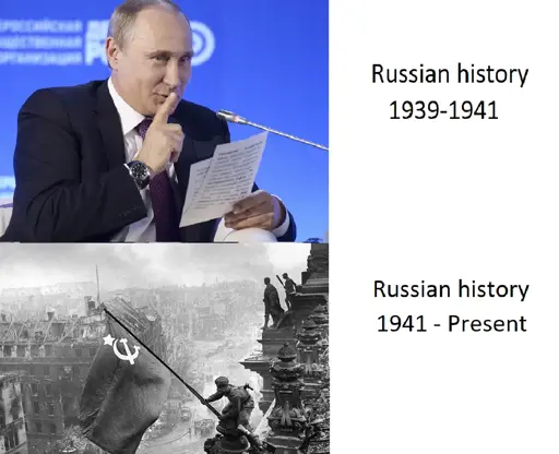 Explanation: The national mythology of Russia in the modern day is very heavily based around how they ‘defeated the fascists’ in the Great Patriotic War (WW2).