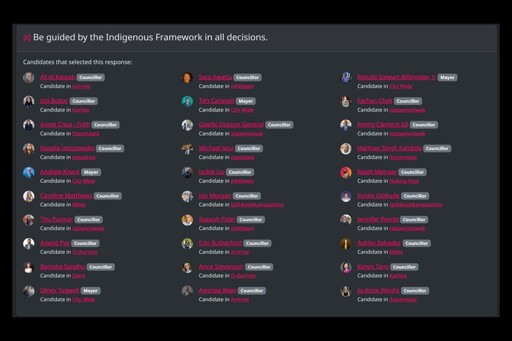 Ugh, only 4 candidates chose to be guided by the Indigenous Framework in all decisions. That’s far too little.