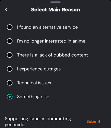 Sunshine (she/her)@lemmy.caM to Boycott US@lemmy.caEnglish · edit-217 days agoDeleting Crunchyroll Account: Give No Quarter to Genocide Supporterslemmy.caimagemessage-square27linkfedilinkarrow-up1280arrow-down15