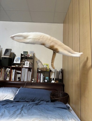 Even the plushy cat on headboard/bookshelf is impressed