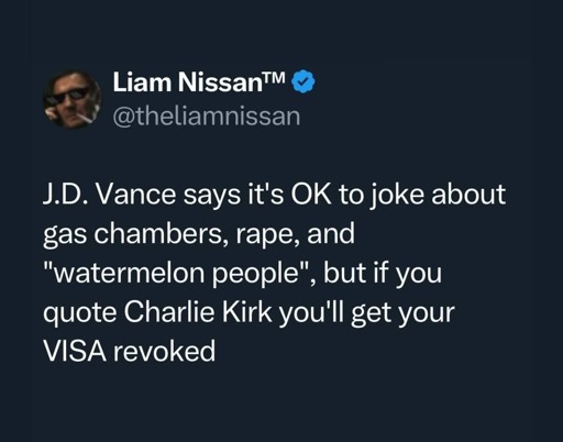 So Charlie Kirk, J. D. Vance, and Donald Trump walk into a gas champer and get raped…