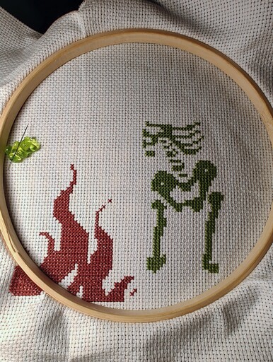 My spooky Halloween cross stitch is coming along nicely! I’m beginning to doubt it will be done by Halloween though lol it’s supposed to be all white on black aida but I was out of black aida so I decided to take some liberties with all of it