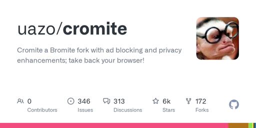 mistermodal@lemmy.ml to Privacy@lemmy.ml · edit-210 days agoCromite a Bromite fork with ad blocking and privacy enhancementsgithub.comexternal-linkmessage-square41linkfedilinkarrow-up199arrow-down12file-textcross-posted to: privacy@programming.dev
