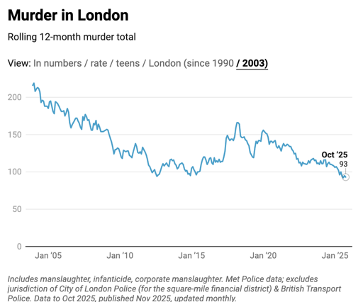 arrow-up1194arrow-down1image93 murders in London (pop: ~9million) in 12 months. London's murder rate is now at the lowest level for decadeslemmy.worlddwouu@lemmy.world to Mildly Interesting@lemmy.world · edit-26 days agomessage-square8linkfedilinkfile-text