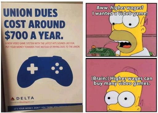 Classic misdirection: compare dues to a toy instead of the extra pay, healthcare, and protections.