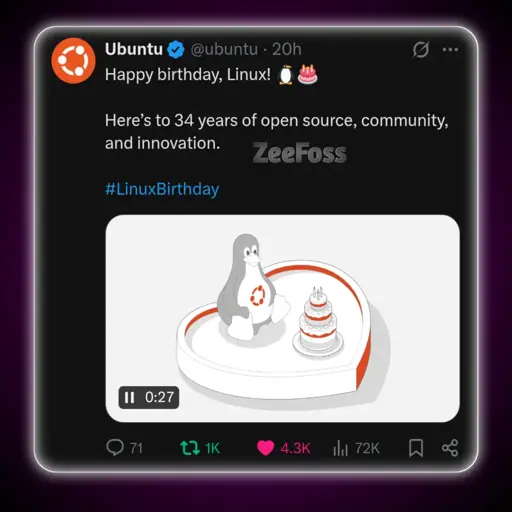 ZeeFoss@lemmy.zip to Linux@lemmy.ml · 2 months agoHappy Birthday Linux ❤️🩹lemmy.zipimagemessage-square15linkfedilinkarrow-up1225arrow-down15file-textcross-posted to: linux@programming.dev